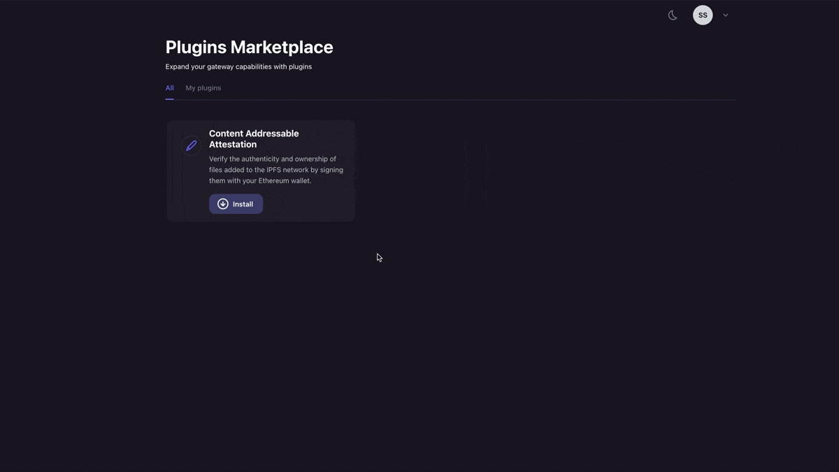 Next, you will want to make a free account on Pinata with this link here. Once your account is created, we can make an API key by navigating to the keys page and clicking “New Key” in the top right. For now, I would recommend giving it admin rights with unlimited uses. Once you’ve created it, save all the API key information somewhere safe, as it is only shown once. Now, we will want to get our gateway set-up. First, visit the gateways page, copy the domain in the format https://turquoise-legitimate-fowl-228.mypinata.cloud, and put that where you stored your API keys. Then, we need to install the Content Addressable Plugin to our gateway. You can do this by going to the “Marketplace” tab on the left side, locating the Content Addressable plugin, then clicking “install”.